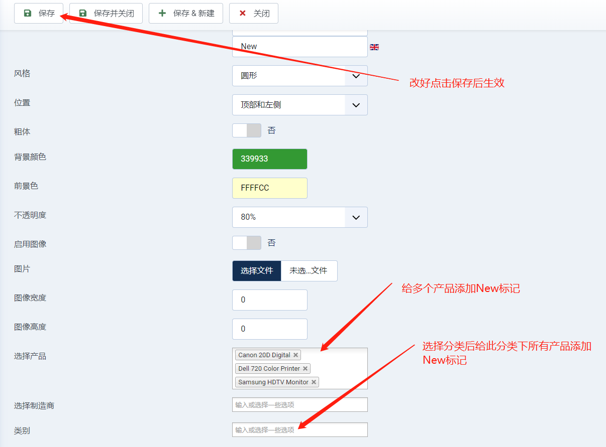 给产品图片添加New或Hot标记
