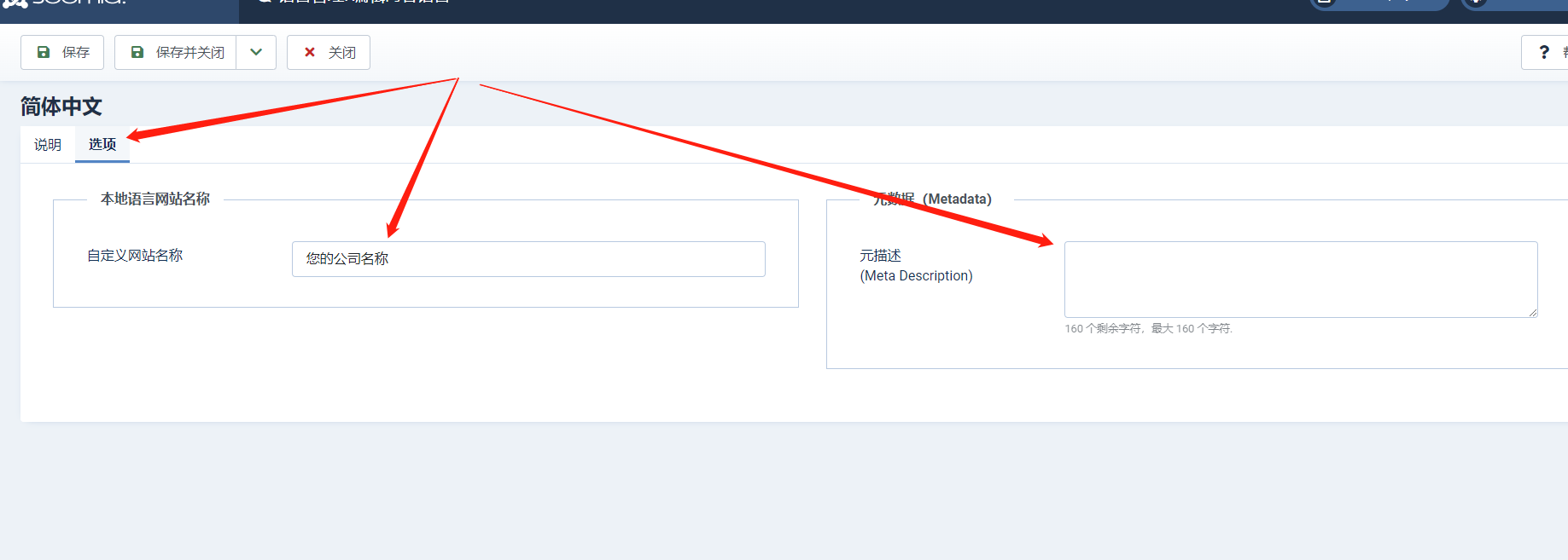 多语言网站设置各语言版本的网站名称: